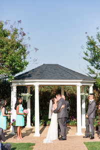 It's the day of your wedding and sunlight is streaming through the tress behind your officiant as he asks you to repeat after him. Your guests wait in anticipation. The giant red barn watches as well. You repeat the words and your officiant says, "You may kiss..."