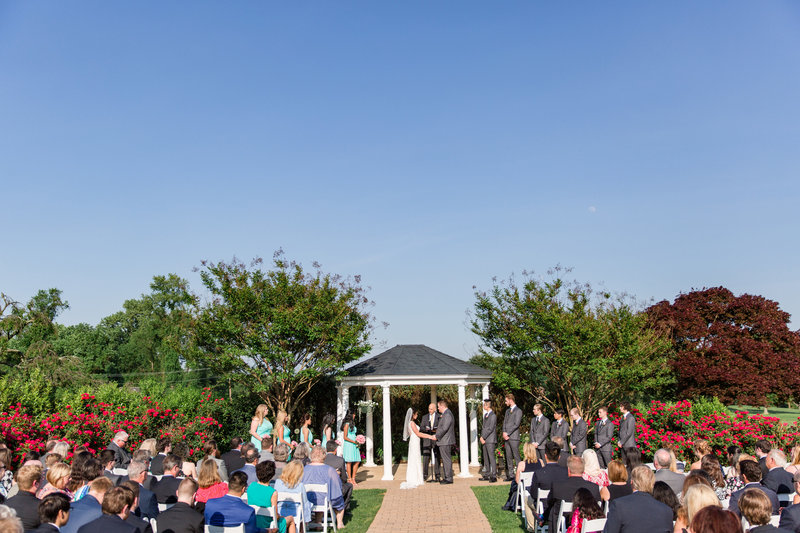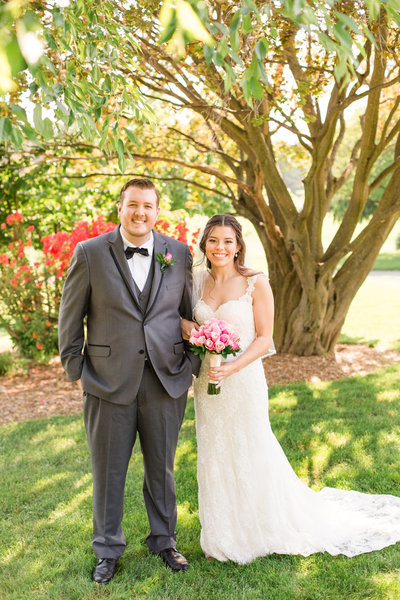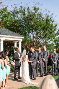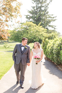 We typically schedule 45 minutes for bride + groom portraits if you're sharing in a first look. If you're not sharing in a first look, you can expect to have approximately 10 minutes for bride and groom photos. For this reason, we highly encourage a first look because your photos are the first things to get cut short if something runs behind.